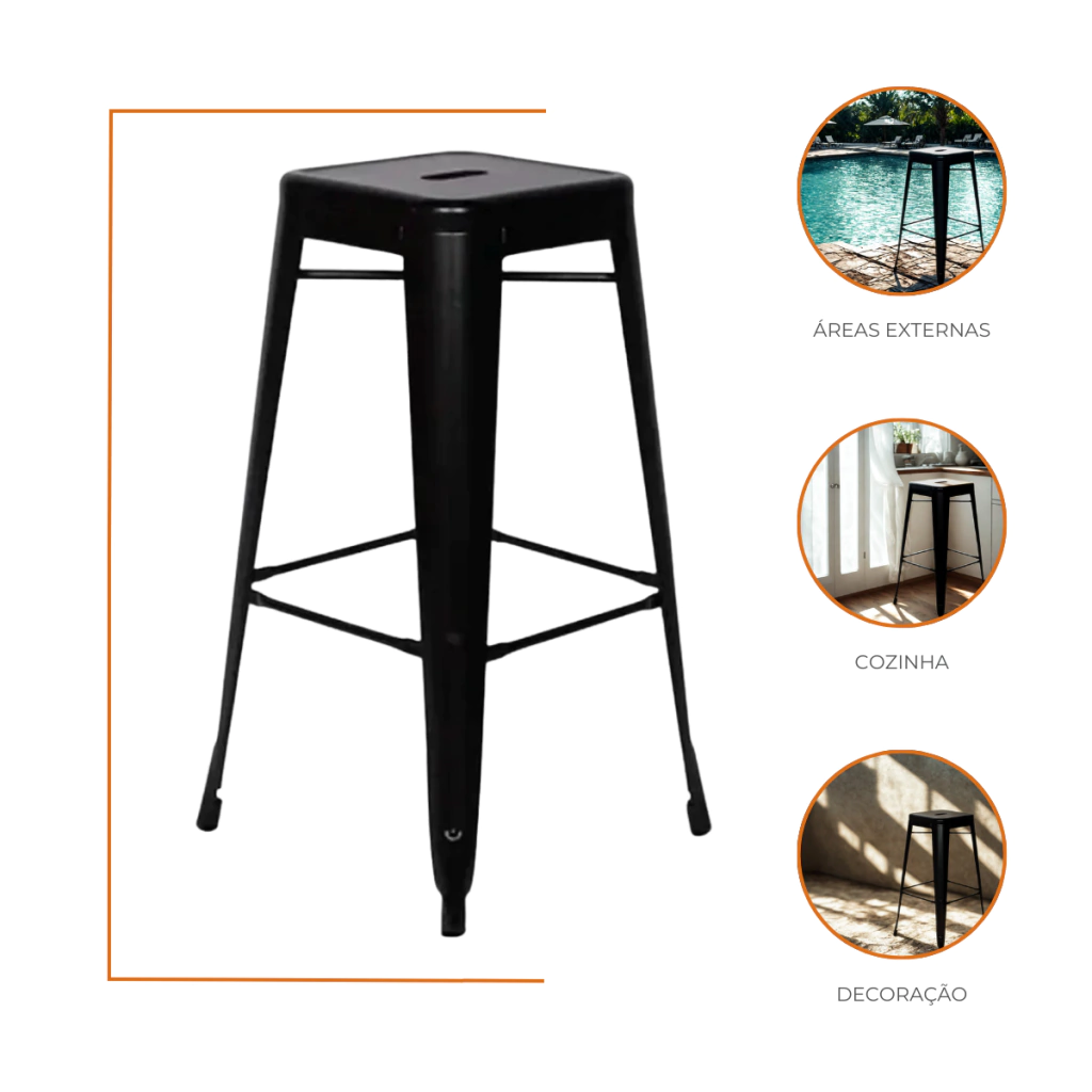 Deixe seu ambiente mais moderno e funcional com a Banqueta Tolix Alta Preta! Com 76 cm de altura, é ideal para cozinhas americanas, bancadas, bares e áreas gourmet. Um modelo robusto, bonito e que combina com qualquer estilo de decoração.