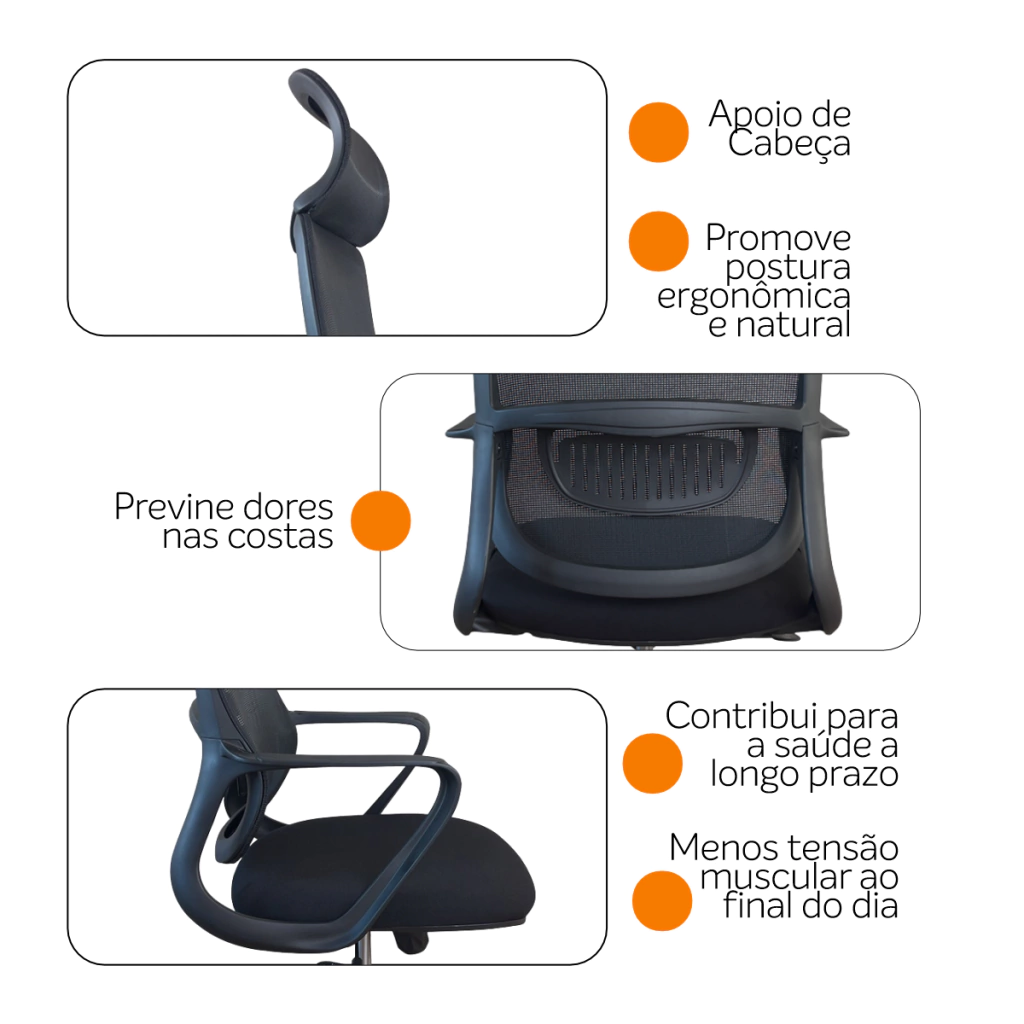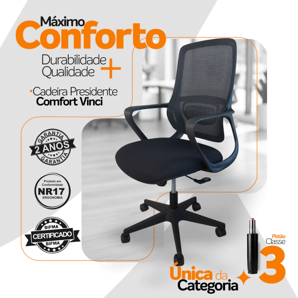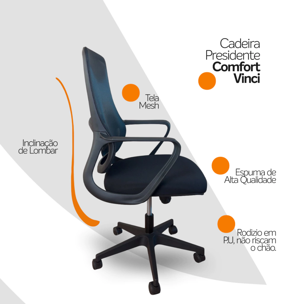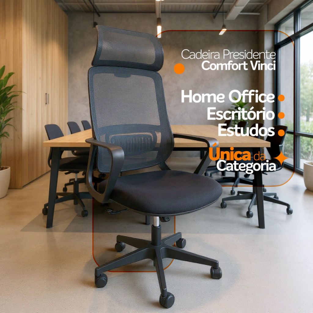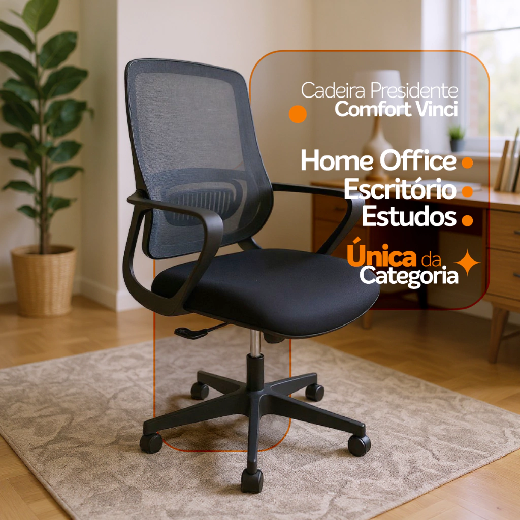 Comfort Vinci entrega ergonomia de ponta, materiais de qualidade e visual moderno.