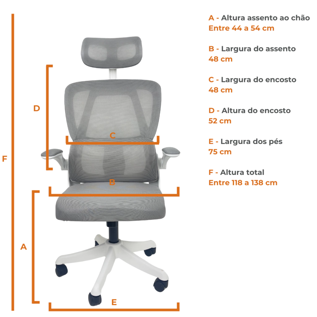 Altura Máxima da Cadeira (com encosto de cabeça): 132 cm