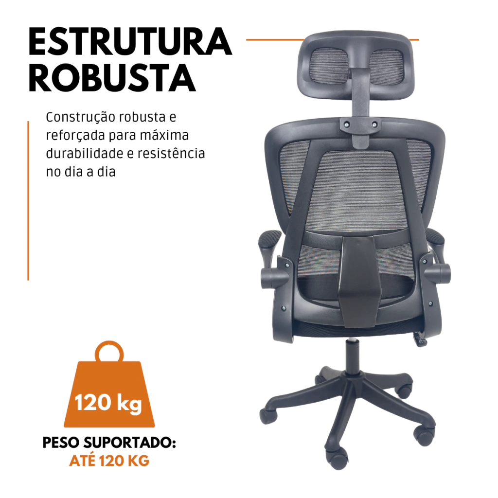 Estrutura Resistente: Feita em Polipropileno com Tela Mesh, oferecendo durabilidade e ventilação.