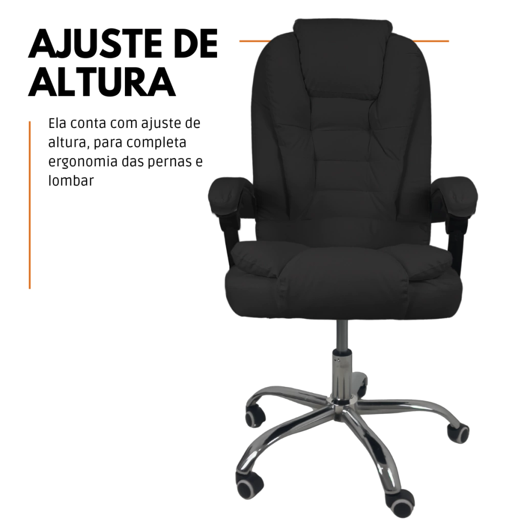 Transforme seu ambiente de trabalho com a Cadeira Presidente Reclinável Ergonômica — ideal para quem busca conforto, estilo e funcionalidade no dia a dia. Com design moderno e encosto reclinável, ela é perfeita para escritórios e home offices, proporcionando excelente ergonomia e bem-estar mesmo após longas horas sentado. Possui ajuste de altura e base giratória para maior praticidade e conforto.