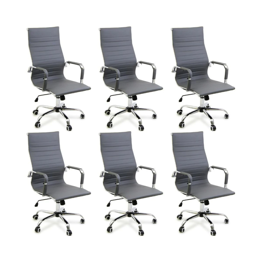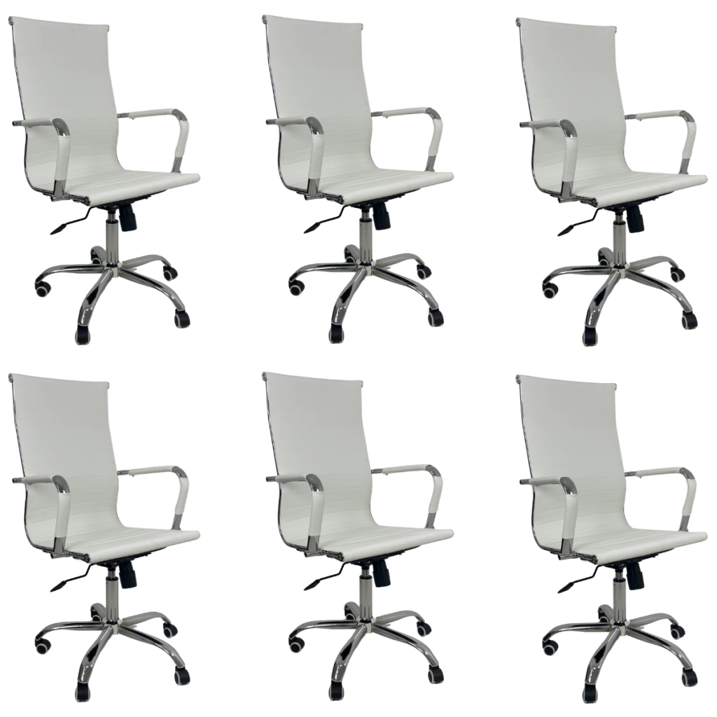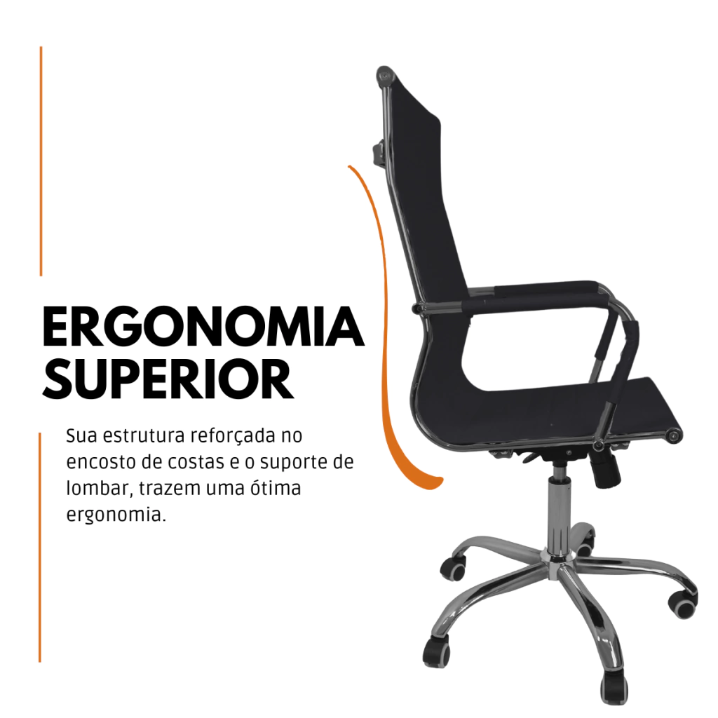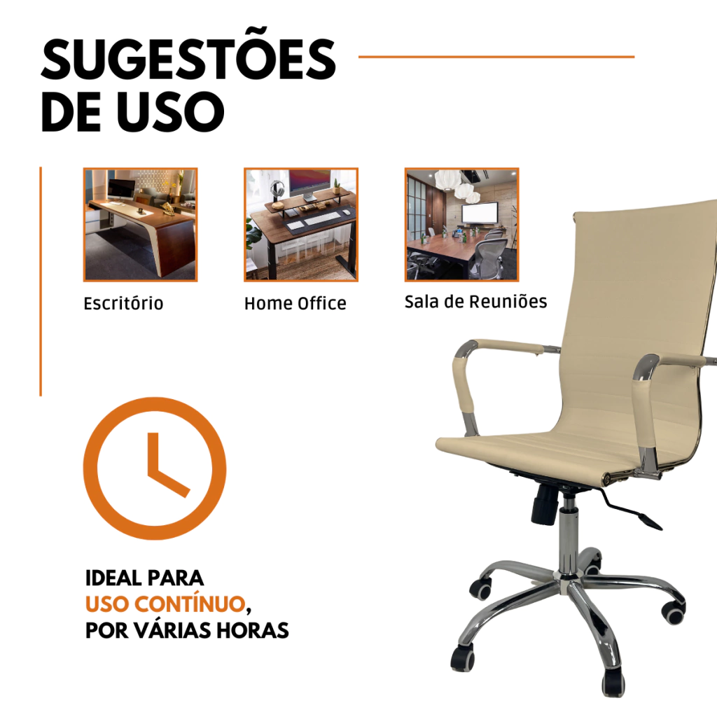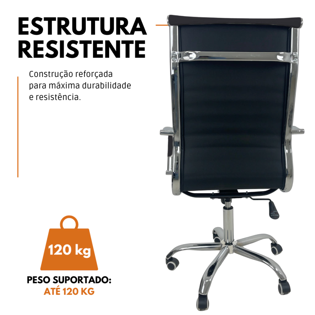 Descubra a elegância da Cadeira de Escritório Giratória Esteirinha Alta. Revestida em couro sintético, possui encosto alto e braços fixos em metal, perfeita para elevar seu home office ou escritório com estilo e ergonomia.