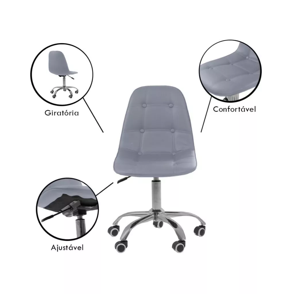 Elegância e funcionalidade se unem na Cadeira Office Eiffel Botonê, com base giratória, ajuste de altura e acabamento em material sintético. O seu escritório, cozinha, sala de jantar ou qualquer outro ambiente fica ainda mais bonitos.